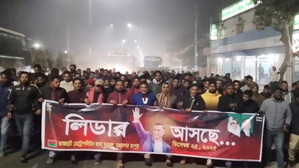 রংপুর মহানগর যুবদলের আহ্বায়ক মোঃ নুরুন্নবী চৌধুরী মিলন এর নেতৃত্বে রংপুর মহানগর তাজহাট থানা যুবদলের স্বাগত মিছিল অনুষ্ঠিত