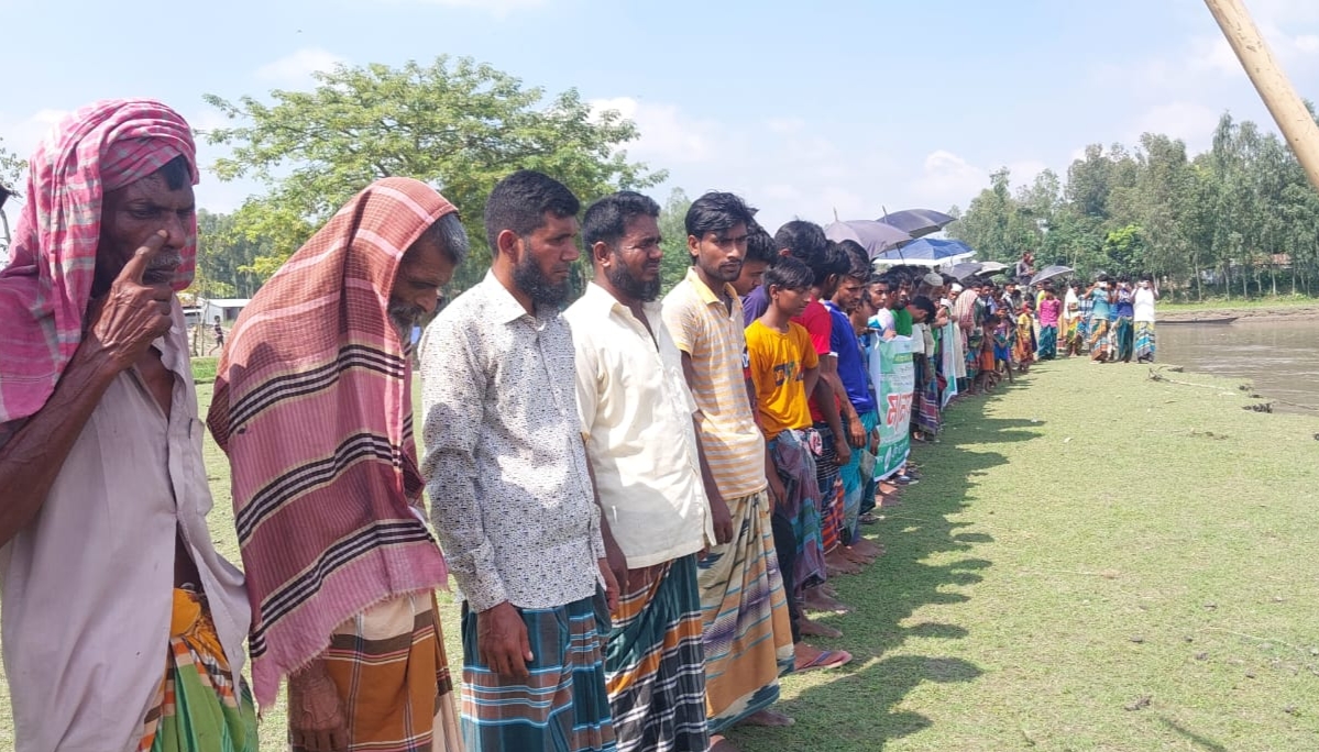 মানববন্ধনে বক্তারা নদীভাঙন রোধে দ্রুত স্থায়ী বাঁধ নির্মাণের পাশাপাশি নদী আইন কার্যকর বাস্তবায়ন, দখল ও দূষণমুক্ত রাখার দাবি জানান।