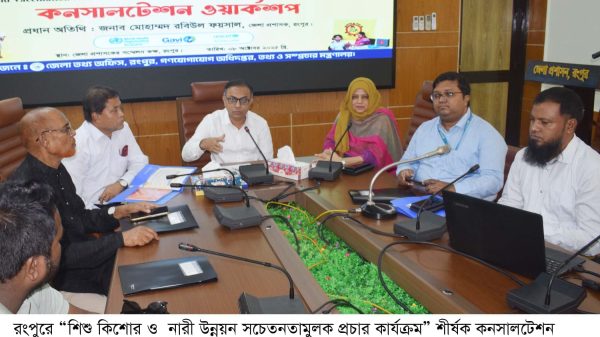 সারাদেশের মতো রংপুরেও সাড়ে ৮ লাখ শিশুকে দেওয়া হবে টাইফয়েড টিকা। এরমধ্যে সিটি কর্পোরেশন এলাকায় ২ লাখ ১০ হাজার ৬১৯ জন শিশু ও জেলার ৮ উপজেলায় ৬ লাখ ৪৮ হাজার ৮৫৪ জন শিশু। ইতিমধ্যে জেলায় ১ লাখ ৭৬ হাজার ৭৫৬ জন এবং সিটি কর্পোরেশনে ৩৬ হাজার ৮৬ জন নিবন্ধনের আওতায় এসেছে শিশু। তবে নিবন্ধিত -অনিবন্ধিত সকল শিশুকেই এই টীকা দেওয়া হবে বলে জানানো হয়েছে। বুধবার (৮ অক্টোবর) বিকেল ৩. ৩০ মিনিটের দিকে জেলা প্রশাসকের সম্মেলন কক্ষে দিনব্যাপী কনসালটেশন ওয়ার্কশপে এ তথ্য জানানো হয়। “শিশু কিশোর ও নারী উন্নয়ন সচেতনতামুলক প্রচার কার্যক্রমচ্ শীর্ষক প্রকল্পের আওতায় ইউনিসেফ বাংলাদেশ এর সহায়তায় টাইফয়েড ভ্যাক্সিন বিষয়ক বিশেষ প্রচার কার্যক্রমের আওতায় মিডিয়া কর্মীদের অংশগ্রহণে জেলা পর্যায়ে দিনব্যাপী কনসালটেশন ওয়ার্কশপ অনুষ্ঠিত হয়। ওরিয়েন্টেশনে জানানো হয়, ‘এক ডোজ টিসিডি টিকা দিন, আপনার সন্তানকে টাইফয়েড ঝুঁকি থেকে মুক্তি দিনথ। সম্প্রসারিত টিকাদান কর্মসূচি ইপিআই এর আওতায় ৯ মাস থেকে ১৫ বছরের নিচের শিশুকে টাইফয়েড টীকা দেওয়া হবে।কনসালটেশন ওয়ার্কশপে প্রধান অতিথি ছিলেন রংপুরের জেলা প্রশাসক মোহাম্মদ রবিউল ফয়সাল। ঢাকা থেকে ভিডিও কনফারেন্সে যুক্ত হন গণসংযোগ অধিদপ্তর ঢাকার পরিচালক (প্রশাসন ও অর্থ) সৈয়দ, এ মোমেন। এসময় উপস্থিত ছিলেন জেলা সিভিল সার্জন ডা: শাহীন সুলতানা, জেলা প্রাথমিক শিক্ষা অফিসার শহিদুল ইসলাম, ইউনিসেফ প্রতিনিধি মঞ্জুর আহমেদ। পুরো অনুষ্ঠান পরিচালনা করেন জেলা তথ্য অফিসের সহকারী পরিচালক আলমগীর কবির। দিনব্যাপী কনসালটেশন ওয়ার্কশপের আয়োজন করে জেলা তথ্য অফিস রংপুর।
