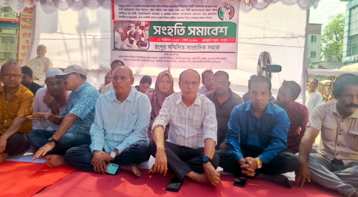 রংপুরের সিনিয়র সাংবাদিক লিয়াকত আলী বাদলকে অপহরণ, মারধর ও সাংবাদিকদের হেনস্তার ঘটনার ন্যায়বিচারের দাবিতে রংপুর সম্মিলিত সাংবাদিক সমাজ সংহতি সমাবেশ করেছেন।